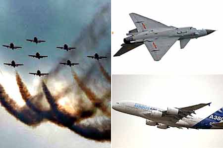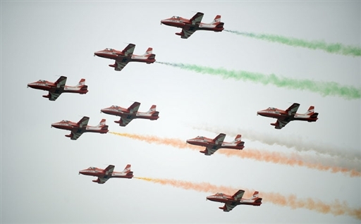 印度"陽(yáng)光"特技飛行隊(duì)航展上進(jìn)行特技表演
