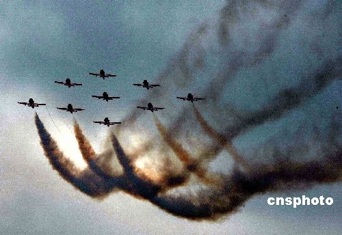 圖:中國(guó)空軍副師長(zhǎng)駕殲-10珠海航展試飛
