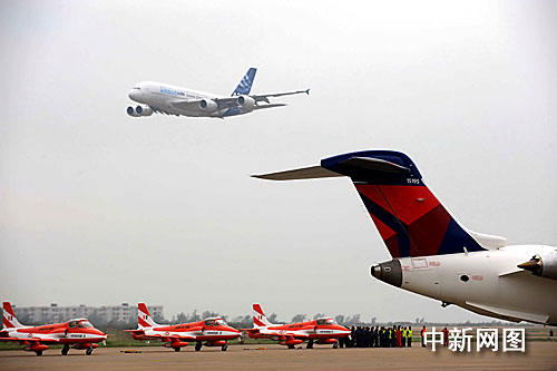 圖:空客A380巨無(wú)霸飛機(jī)翱翔珠海