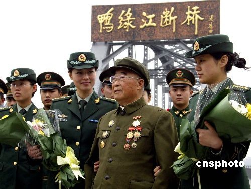 志愿軍老戰(zhàn)士鴨綠江邊紀念抗美援朝58周年