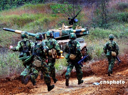 圖:解放軍諸軍兵種進行實兵、實彈訓練
