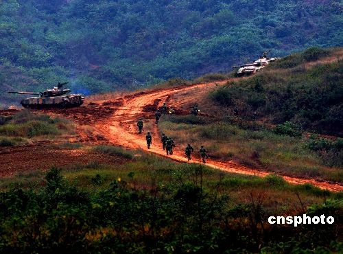 圖:“前鋒—2008”演習諸兵種聯(lián)合協(xié)同作戰(zhàn)