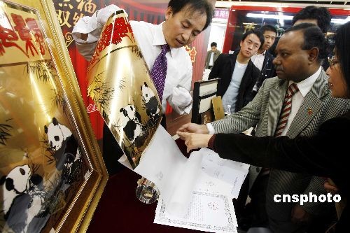 圖:純金的熊貓國畫亮相京城