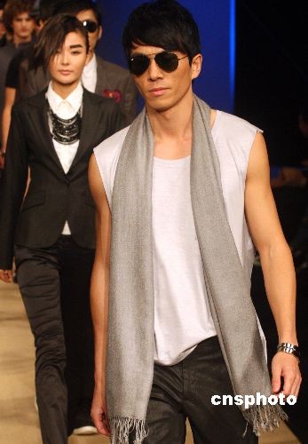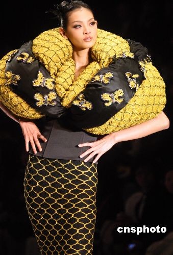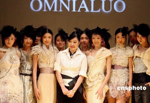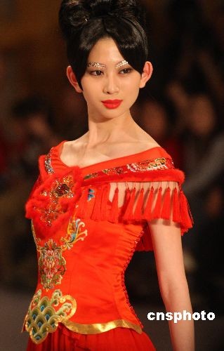 圖:模特中國(guó)國(guó)際時(shí)裝周上展示新款時(shí)裝