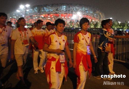 圖:奧運會閉幕郭躍、張怡寧走出鳥巢