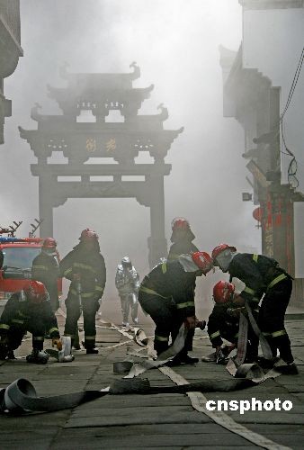 圖:安徽黃山消防演練進(jìn)老街