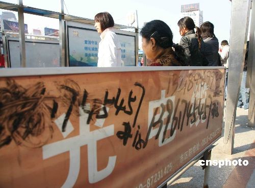 圖:無(wú)錫火車站廣場(chǎng)站臺(tái)、公話亭上涂滿小廣告