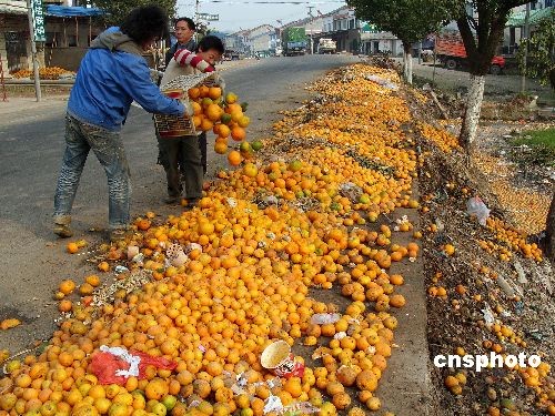 圖:湖北宜昌柑橘成路邊垃圾
