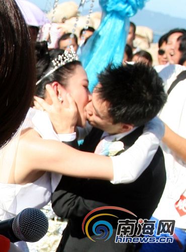 圖:新郎楊威婚禮現(xiàn)場(chǎng)深情親吻新娘