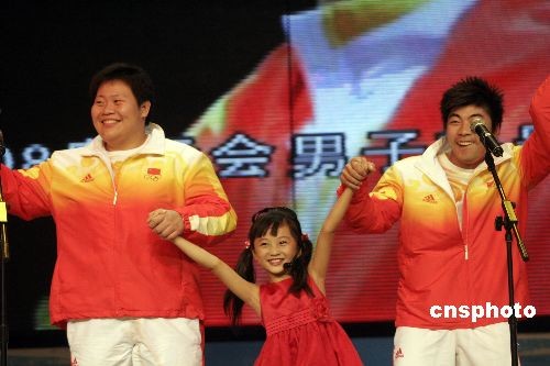 圖:陳燮霞、張湘祥等奧運(yùn)冠軍同臺(tái)獻(xiàn)唱