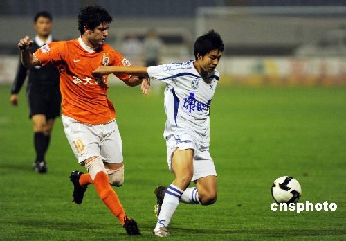 圖:中超賽場(chǎng)山東魯能1比1言和天津康師傅