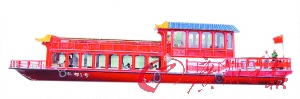 該畫(huà)舫船外形美觀,格調(diào)典雅,操縱靈活,是一款具有典型客家風(fēng)情的船型,主要用于接待、觀光和游覽。(陳治家 吳立平)