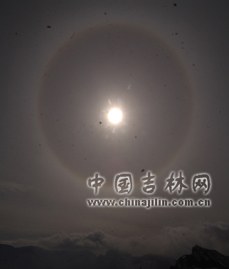 “日暈”多出現(xiàn)在春夏季節(jié)。長(zhǎng)白山在深秋出現(xiàn)日暈,更屬難得一見(jiàn)。日暈常常是天氣變化的一種前兆,日暈出現(xiàn)之后,一般都要下雨。10月17日,長(zhǎng)白山上是大雪,山下北坡的二道白河、西坡的撫松、南坡的長(zhǎng)白及吉林省大部分地方均為大雨,證明“日暈三更雨,月暈午時(shí)風(fēng)”的諺語(yǔ)是準(zhǔn)確的。