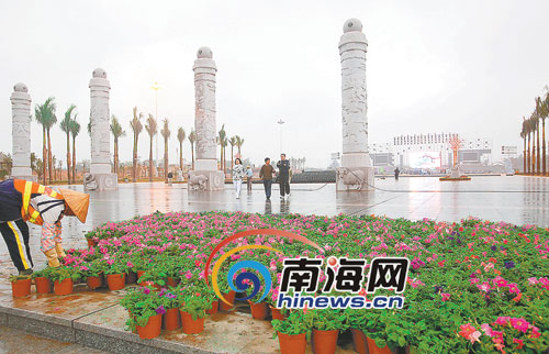 近一個星期來,儋州城區(qū)張燈結彩、百花綻放喜迎歡樂節(jié),城區(qū)內(nèi)懸掛大紅燈籠5000余個、燈桿廣告旗2000余幅,擺放鮮花15萬盆。(李關平 黃遠舶 郭樹護)