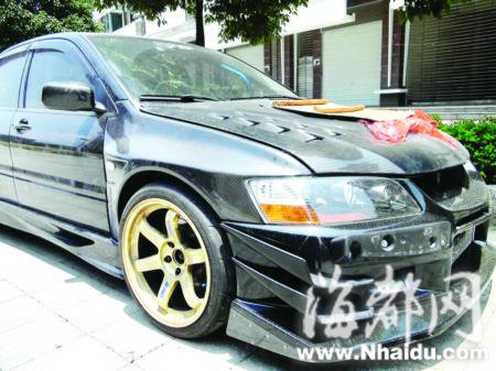 阿超指著停在他旁邊的一輛黑色的EVO跑車說,這輛車才是他的目標(biāo),可是恐怕很難跟得上,現(xiàn)在只能用一些其他車上拆下的舊件改裝。據(jù)他介紹,那輛黑色的EVO跑車屬于福州某地產(chǎn)商公子的,家里豪車無數(shù),可這位公子卻鐘情于改車玩車,在這輛EVO跑車上已投入了100多萬元,現(xiàn)在正準(zhǔn)備將車上的坐椅等物拆除,加裝防滾架,對發(fā)動機再次升級后送往北京,參加在那里舉行的賽車。