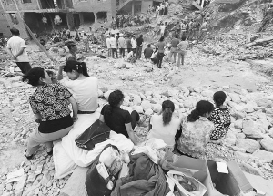 人群中,42歲的薛愛娣有些不知所措,她沒帶救援工具,也沒多大力氣,幫不上忙。在一處廢墟邊坐了許久,她起身離開,半個多小時后,有些吃力地搬來了兩個箱子。
