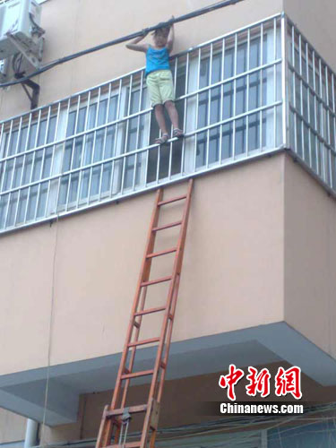 據(jù)當(dāng)?shù)厝罕姺从,小女孩家中父母因外出辦事,將小女孩反鎖在屋內(nèi),小女孩爬到窗臺(tái)上玩耍,一不小心從窗臺(tái)上掉了下來(lái),正好卡在二樓窗臺(tái)防護(hù)欄與電話線之間,過(guò)往路人發(fā)現(xiàn)后立即撥打119報(bào)警進(jìn)行求救,這才挽救了小女孩的生命。完