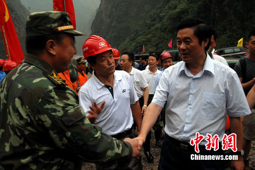 中新網(wǎng)綿竹8月17日電(王超)17日下午13時50分許,中共四川省委書記劉奇葆、副書記李崇禧,副省長鐘勉帶隊查看小崗劍道路搶通現(xiàn)場,親切慰問了在場搶險的公安、消防、武警、省路橋公司等單位代表。