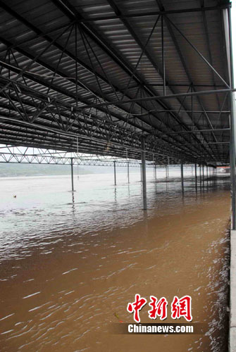 從22日下午開始,長江重慶段水位持續(xù)上漲,逐漸淹沒了重慶菜園壩水果市場的部分?jǐn)偽缓蛡}庫,當(dāng)日,不少商家開始將西瓜搶運到安全地帶。記者今天在該市場看到,上漲的江水淹沒了約八、九十家商家的攤位,不少沿江而下的漂浮物堆積在攤位附近。