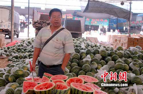 一位從陜西販運西瓜到重慶的商販告訴記者,因為攤位倉庫被淹,他們沒了賣瓜的地方,一卡車的西瓜面臨積壓,昨日甚至還有一些瓜販將西瓜擺到公路上“大甩賣”。一位宮姓商販憂心忡忡地告訴記者,受洪峰淹沒攤位影響,加之最近兩天當(dāng)?shù)靥鞖怅幱臧殡S降溫,他的西瓜已從7角錢一斤降到5毛。(完)