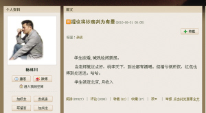 楊林川表示,需要說明的是,他在博文中建議定罪的炒房指的是炒房團(tuán),是集團(tuán)性的整個(gè)單元、整幢樓購買的行為,這種行為足以影響市場(chǎng)的發(fā)展。而寫博文的第一個(gè)目的是告訴大家炒房不是光榮的事!霸诰W(wǎng)上搜索炒房,跳出來最多的是‘炒房技巧研討’、‘專家教你炒房’,還有人炫耀炒房賺了多少錢。倒火車票的黃牛人人喊打,而炒房怎么卻成了光榮的事。炒火車票的黃牛只是讓我們一時(shí)回不了家,可炒房的人卻讓我們永遠(yuǎn)沒有了家!