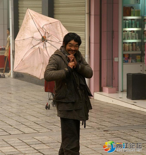 今日17點(diǎn)23分,有網(wǎng)友在華龍網(wǎng)兩江論壇放上了重慶街頭偶遇的“浮云哥”拍攝下的5張系列圖片,粉紅色雨傘配上嬌柔的表情,得到了百名網(wǎng)友的頂帖膜拜,紛紛稱“此人必火”。