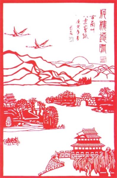 葉長(zhǎng)友剪紙:古八景之河樓遠(yuǎn)眺蘭州