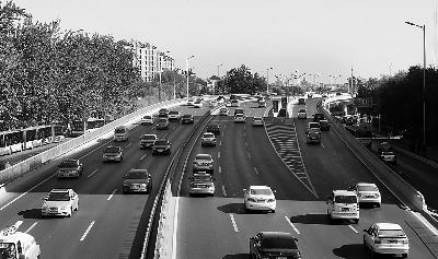 11月3日單雙號限行期間,早高峰時段,二環(huán)路上車流不多 攝/法制晚報記者 楊益 曹博遠