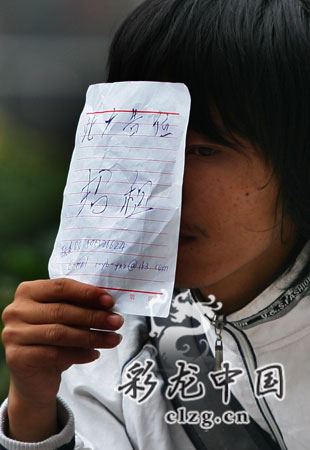 羞澀的表情,略亂的頭發(fā),穿一身白色衣服,旁邊擺一個(gè)旅行包。這個(gè)臉上還有著稚氣的小伙子,用蹩腳的普通話指著紙上的字,有些不好意思地說(shuō):“寫(xiě)得很不好!笔峙e一張紙遮住臉,上面是他自己用鋼筆寫(xiě)的“此廣告位出租”6個(gè)大字,右下角留的小字標(biāo)有自己的QQ號(hào)和電子郵址。