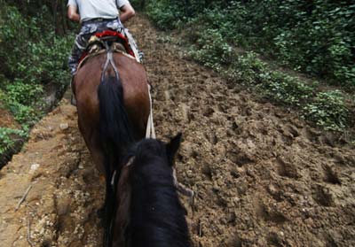 按這里的規(guī)矩,如果你之前沒有騎過馬,馬主人會慫恿你請一個(gè)養(yǎng)馬人領(lǐng)馬,這樣做的確是“為了你的安全”,可加上領(lǐng)馬人自然就多了一匹馬,而這匹領(lǐng)馬的費(fèi)用與我們租用一匹馬的費(fèi)用相同,同樣也由游客承擔(dān)。當(dāng)日,我們與一名養(yǎng)馬的女主人談定價(jià)格準(zhǔn)備騎馬上山時(shí),忽然風(fēng)雨大作,眼看本來泥濘的馬道積滿了更多的雨水,大家只好掃興地放棄騎馬上山的打算。
