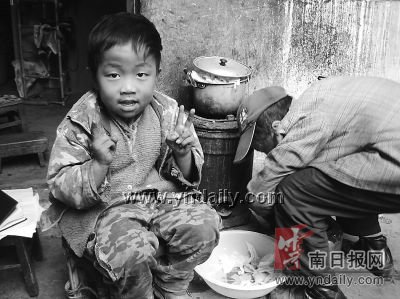 中午1時(shí),是祖孫兩人的午飯時(shí)間,一碗清水煮白菜、一碟咸菜就是兩人的下飯菜!拔易钕矚g吃的東西就是腐乳拌飯,還有蘿卜、白菜……”問起珍珍最喜歡吃的東西時(shí),她響亮地回答。給她照相時(shí),她就沖著鏡頭做鬼臉,笑嘻嘻地比著V字形的手勢(shì),天真無(wú)邪的樣子,讓人看了既心疼又心酸。