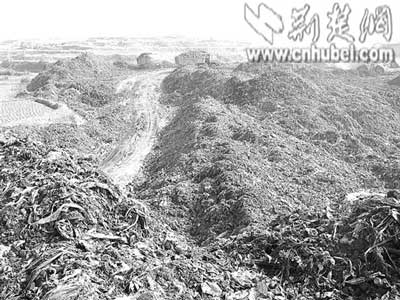 昨日上午,記者來(lái)到現(xiàn)場(chǎng)看到,掛著武漢牌照的多輛大貨車(chē)正不停地把垃圾倒在該村的地上。地上堆成了一個(gè)個(gè)小山坡,兩臺(tái)推土機(jī)在上面碾軋,現(xiàn)場(chǎng)發(fā)出陣陣惡臭。一名在現(xiàn)場(chǎng)指揮施工的男子告訴記者,是開(kāi)發(fā)商叫他們往這里倒垃圾的。