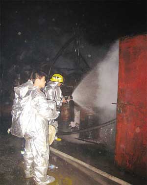 江寧區(qū)消防大隊(duì)東山中隊(duì)的中隊(duì)長鄭先平告訴記者,到達(dá)現(xiàn)場前,1號儲罐已經(jīng)發(fā)生爆炸,火焰有幾十米高,爆炸后,產(chǎn)生的流淌火在地面上蔓延,離1 號儲罐相隔兩米遠(yuǎn)的2號儲罐周圍擺了兩百多個塑料桶,桶內(nèi)裝的是廢棄乳化液。流淌火吞噬了塑料桶,接著,一個個裝廢棄乳化液的桶就像一串串鞭炮一樣跳躍著炸了起來。此時,中隊(duì)的三名班長和一名新隊(duì)員一邊抱水槍給2號儲罐降溫,一邊向廢棄乳化液桶上噴灑泡沫,但火勢太猛根本無法控制。塑料桶爆炸氣浪擊起的廢棄乳化液濺到了他們的面部和眼睛,他們四人頓時感到眼睛紅腫,皮膚有灼痛感,大家并沒有后退,而是戴上空氣呼吸器繼續(xù)戰(zhàn)斗。此時,鄭先平見情況不妙,2號罐已經(jīng)被大火吞噬,漸漸地罐體被燒得通紅,眼看支撐罐體的鋼架也要被高溫熔化了,鋼架的松動發(fā)出“咯咯”的響聲,隨時有倒塌爆炸的危險,鄭先平立即命令所有隊(duì)員后撤。大家接到后撤命令后迅速跑開,剛撤出不遠(yuǎn),身后發(fā)生天崩地裂的巨響,2號儲罐爆炸了,幾十米高的火焰在夜空中拼命地扭動著“身軀”。直到其他消防車和隊(duì)員們相繼趕到,大家繼續(xù)和火魔戰(zhàn)斗。被廢棄乳化液噴濺的三名班長和一名隊(duì)員傷情逐漸明顯,連夜被送到醫(yī)院救治,目前已無大礙。據(jù)了解,爆炸的兩個儲罐內(nèi)裝的都是廢棄乳化液,兩個儲罐加起來重量達(dá)30噸。