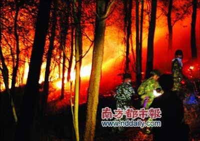 昨日凌晨0時許,廣州白云區(qū)太和鎮(zhèn)東坑塘山與京珠高速接駁處山頭陷入火海,火勢一度蔓延至山腳,威脅到村莊和京珠高速。接警后,市森林防火指揮部帶領(lǐng)5支森林防火大隊,在市消防、太和鎮(zhèn)消防的協(xié)助下,采用高壓水車與水泵串連的先進(jìn)技術(shù),實施夜間遠(yuǎn)程滅火,40分鐘內(nèi)控制火勢,確保了山腳眾多村莊的安全和京珠高速的正常通車。白云警方在現(xiàn)場抓獲一名疑患精神類疾病的男子,后證實山火正是因其無意縱火而致,該男子目前已被拘留。