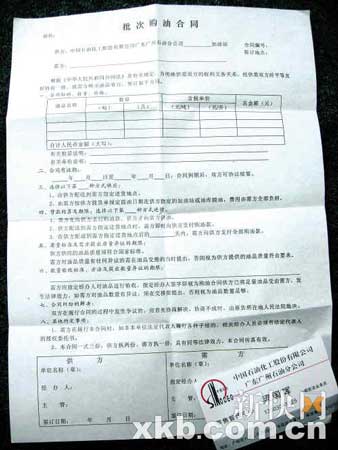 記者又問(wèn):“我們能不能簽合同呢?”葉站長(zhǎng)說(shuō):“當(dāng)然可以簽!彪S后他當(dāng)場(chǎng)拿出一份《批次購(gòu)油合同》,合同上的“供方”就是“中國(guó)石油化工股份有限公司廣東廣州石油分公司加油站”。“這些都是正式合同,提貨單位也是我們公司的正式提貨單,發(fā)票也是正式發(fā)票,合作愉快最重要。”葉站長(zhǎng)說(shuō)。