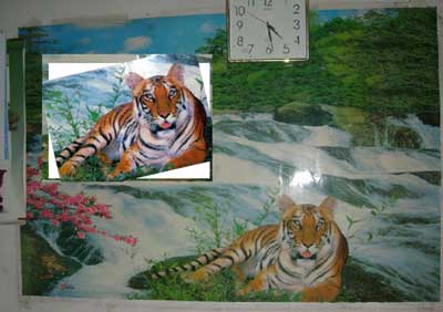 昨天晚上九時(shí)許,網(wǎng)友“攀枝花xydz”在“打虎派”的大本營色影無忌華南虎臨時(shí)論壇里發(fā)帖稱:“老虎是假的。我今天仔細(xì)看我家的一副掛在墻上的老虎畫,除了耳朵不一樣,哪里都是一樣的,連老虎的紋路都是一樣的。但我不知道怎么傳圖,我已經(jīng)照下來了!苯裉焐衔10點(diǎn)半,網(wǎng)友小魚啵啵啵將他收到的圖片發(fā)到了同一論壇,《人肉引擎搜索結(jié)果,請看四川攀枝花朋友給我發(fā)的疑似老虎原圖》。這張照片剛一出來,到中午就已被頂?shù)搅?3頁。各路高手更是立即將年畫老虎與“周老虎”進(jìn)行了比對,得出是同一只老虎的結(jié)論。打虎陣營一片歡呼。