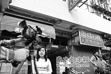 報(bào)道所指的外幣找換店鋪,位于香港旺角奶路臣街得寶大廈一樓一個(gè)臨街商鋪。昨日下午,記者去到那里時(shí),發(fā)現(xiàn)店鋪已經(jīng)關(guān)門。而香港多家媒體的記者在獲知消息后,也先后趕到采訪,但都吃了閉門羹。