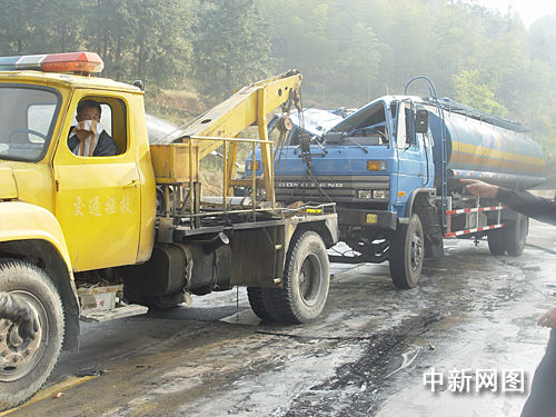 中新網(wǎng)韶關(guān)11月17日電(馮昶 廖志鋒)11月17日,一輛載滿危險(xiǎn)化學(xué)物品甲醛的槽罐車(chē),在廣東省道S347線新豐縣境內(nèi)長(zhǎng)江道班附近側(cè)翻,并流出大量有毒液體甲醛。新豐縣公安局民警和消防官兵僅用兩個(gè)多小時(shí)將側(cè)翻的槽罐車(chē)吊起,救出兩名傷者,消除了安全隱患。