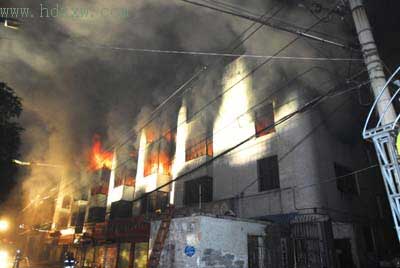 吳女士告訴記者,下午5:30,大部分工人已經(jīng)下班,當時她正在5樓辦公。沒多久,工廠起火,她忙打電話叫仍在廠里逗留的幾個員工疏散,沒想到,等她出門時,大火已經(jīng)擋住了樓梯通道。