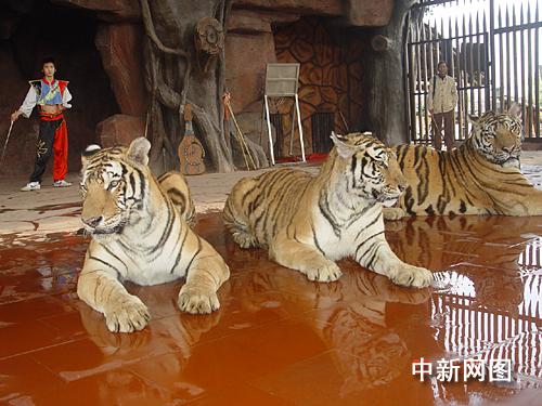 中新網(wǎng)順德11月22日電(孫建駒 謝俊忠)陜西省鎮(zhèn)坪縣農(nóng)民周正龍拍攝華南虎一事經(jīng)媒體廣泛傳播后,一時(shí)坊間沸沸揚(yáng)揚(yáng),并引發(fā)“打虎派”和“挺虎派”的熱烈爭(zhēng)論,互聯(lián)網(wǎng)上更是“打虎”聲一片。在真假華南虎熱爭(zhēng)之際,廣東順德長(zhǎng)鹿休閑度假農(nóng)莊馬戲團(tuán)將3只東北虎的照片制成大小一樣的噴畫,準(zhǔn)備邀請(qǐng)網(wǎng)友與周正龍前來順德拍虎,然后比較真虎照與噴畫虎照的區(qū)別所在。