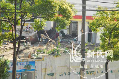 有目擊者稱,早上經(jīng)過(guò)加油站,突然聽(tīng)一聲巨響,隨后看到有一人從加油站內(nèi)飛出,目測(cè)約有五層樓的高度,后掉落在馬路對(duì)面的店門口。