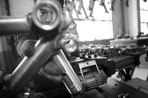 昨日9時(shí)許,石景山區(qū)一運(yùn)動型自行車生產(chǎn)車間,一名工人拿起刻碼機(jī),在一輛自行車前臉管上,刻下兩行15位數(shù)字。據(jù)工作人員講,該15位數(shù)字就是自行車的編碼,前4位為企業(yè)代碼,后面分別為車種、流水線代碼,“看下這些數(shù)字,馬上就能知道一輛自行車的產(chǎn)地、出廠日期”,據(jù)其介紹,每輛自行車的編碼具有全國惟一性,“不可能有編碼完全相同的自行車!