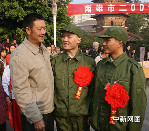 中新網(wǎng)韶關(guān)12月4日電(馮昶 李凌 朱祖純 李子亮)12月4日,粵北革命老區(qū)南雄市三影塔廣場(chǎng)人群涌動(dòng),紅花簇簇,一派喜氣洋洋的熱鬧場(chǎng)面,當(dāng)?shù)卣谶@里舉行隆重的進(jìn)藏新兵交接儀式。家住南雄市鄧坊鎮(zhèn)洋西村的一對(duì)畬族同胞兄弟藍(lán)旭東、藍(lán)善斌雙雙踏上了進(jìn)藏當(dāng)兵的旅程。