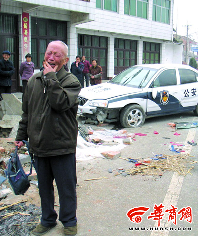 濤濤的雙親常年在外務(wù)工,他一直和爺爺奶奶生活,每天放學(xué)后爺爺都會去路上接他。12月3日下午3時許,王興舉老人朝孫子回家的方向趕去時,一輛警車從316國道由西向東駛過,汽車駛出幾十米后突然斜著沖到對面車道,并撞在馬路旁的花壇上。“太可怕了!”當時正在馬路對面的村民王新強說:“警車撞到花壇后便一連側(cè)翻了3個跟頭,才落在約十余米以外的路邊!边@時,他才發(fā)現(xiàn)背著書包沿馬路邊回家的濤濤已倒在血泊里。