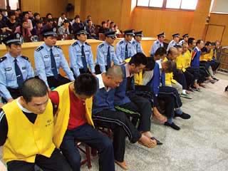 11月12日,漳州市中級(jí)人民法院召開宣判大會(huì),謝某國一審被判死刑,緩期2年執(zhí)行;王某陽被判處無期徒刑;陳某明等22名被告被判20年到6個(gè)月不等的有期徒刑;另有9名團(tuán)伙成員因涉嫌其他犯罪另案處理。