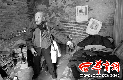 12月8日晚,在西安市后村一間四周被荒草包圍的破屋里,90歲的賣報老人蘇之敬守著小蜂窩煤爐坐了整整一夜!不是他不想睡覺,而是那張用磚頭壘起的床上,兩床御寒的被子和枕頭剛被人偷了,和被子一起“消失”的還有他靠賣報辛辛苦苦積攢的3000元錢,那些血汗錢藏在枕頭里。