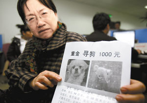 “咪咪很乖,晚上都是我老伴摟著它睡。我們一起生活了兩年零三個(gè)月,已經(jīng)把它當(dāng)家人了。狗丟了以后,我女兒和老伴哭了好多次。女兒為此都不跟我說(shuō)話了。它是京巴和蝴蝶犬的串兒,一點(diǎn)也不值錢(qián),但這種感情難以割舍。”