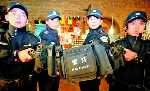 按照公安部《公安單警裝備配備標(biāo)準(zhǔn)》通知精神,今年以來(lái),在市委、市政府和上級(jí)公安機(jī)關(guān)的支持下,市公安局率先為特警部門(mén)配備手銬、急救包、警用水壺、強(qiáng)光手電、收縮警棍、單警背囊、催淚噴射器、對(duì)講機(jī)標(biāo)準(zhǔn)化武裝裝備。