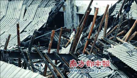 昨日上午11時(shí)15分,增城市新塘鎮(zhèn)大敦村偉強(qiáng)織廠發(fā)生坍塌事故,1700平方米的廠房屋頂由東向西在不到10秒的時(shí)間內(nèi)全部塌下。廠內(nèi)當(dāng)時(shí)有18名工人在上班,石棉瓦、鐵皮連同鋼材、木梁朝他們?cè)襾?lái)。據(jù)官方統(tǒng)計(jì),事故造成1人死亡兩人輕傷。但記者從醫(yī)院了解到,10人送院觀察,截至昨晚7時(shí)30分,仍有7人留醫(yī)觀察。據(jù)調(diào)查,11月初,工廠老板曾在車間加裝了石膏天花。