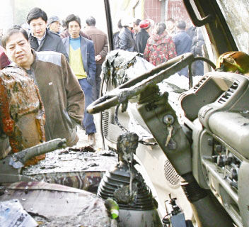 現(xiàn)場(chǎng):城管執(zhí)法車燒成空架子